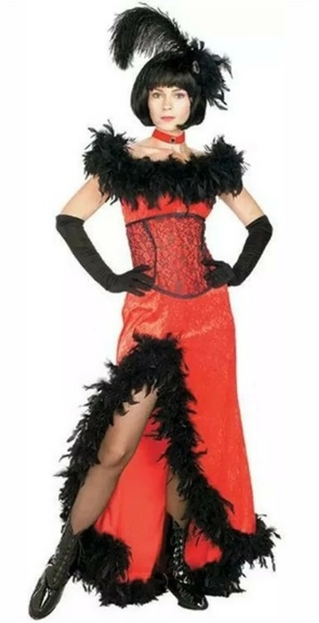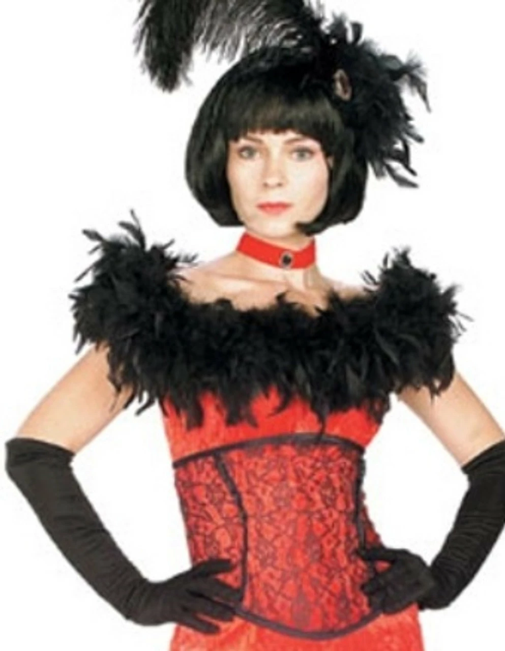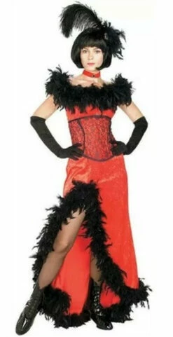 Enter the Saloon with a bang in this sultry Red Saloon Sexy Women Costume! Make all the cowboys stare in this stunning red dress with black feather trim and slit at the front, as well as feathers around the off-the-shoulder cut. The dress also includes a black lace corset to accentuate your shape. Finish off this Wild West look with the black feathered headpiece for the sultriest look in all of the saloons!