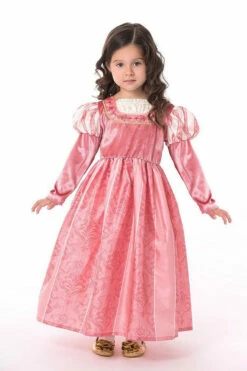 Your children love princesses? This Coral Renaissance Princess dress will make them feel like they traveled to the Renaissance. It’s perfect for Halloween, school plays, or birthday parties! This beautiful dress is made by Little Adventures, a company producing quality costumes for children. It features a soft, corral pink dress with elegant trims and and puff long sleeves. This renaissance dress is designed with non-itchy, soft stretchable fabric, and no buttons, zippers, or ties to frustrate little fingers, making it easy for little ones to put it on and take off by themselves.