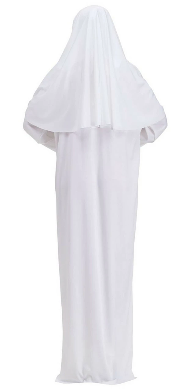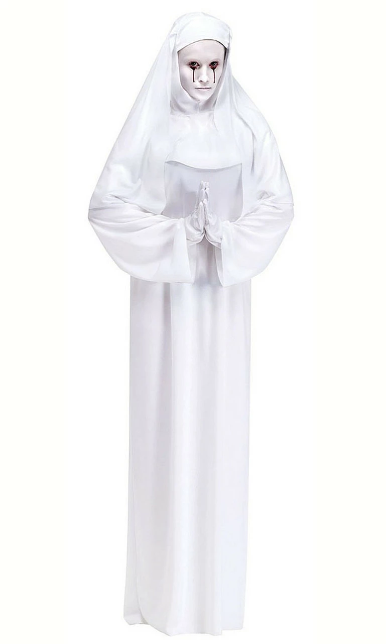 Perfect for this coming season, you’ll be sure to make everyone at the party tremble in horror when you wear this Scary Mary Nun Adult Costume! This scary outfit features a full-length white gown with nun-style collar, matching gloves, and a white veil headpiece. Accesorize this with matching face paint and you’ll be ready to haunt the evening!