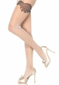 Dressing up as the sexy, sultry maid this Halloween? These Sheer woven polka dot pantyhose with scalloped lace accent are the perfect addition to any cute and flirty costume!