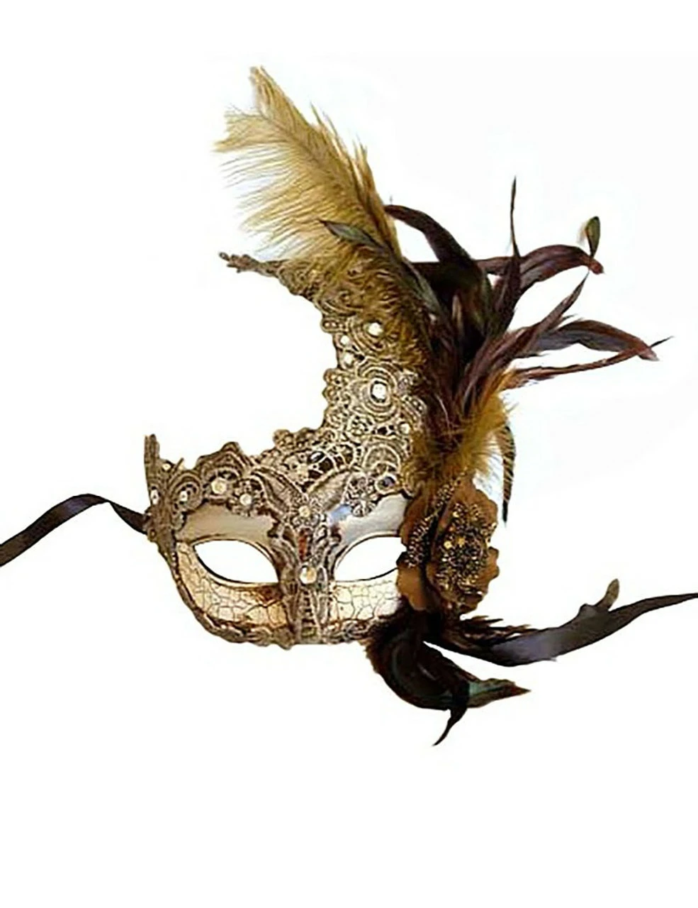 The Silver Venetian Lace Mask with Feathers features a beautiful flower and feather detail on the side. It’s secured with ribbon ties for easy adjustment. Wear this mask for your Masquerade Ball, Mardi Gras or any Masked event!