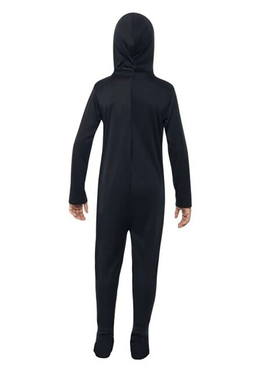 What better costume for Halloween than the classic Skeleton Costume! This cool costume features a black hooded skeleton jumpsuit that will have you looking spooky and amazing in seconds. Add some skeleton face paint or a skeleton mask (neither are included) for more effect!