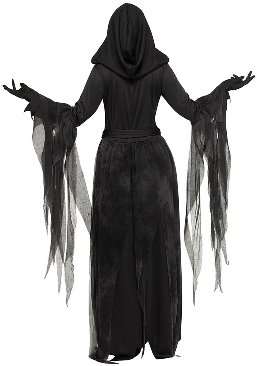 You don’t need to be soulless to wear this costume! The Soulless Reaper Women Costume features a black tattered looking dress with an attached hood, blood splatted detailing and black gloves to complete the look.