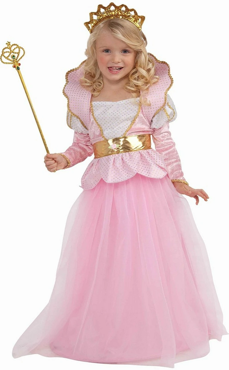 Her sparkling charm will surely captivate the whole castle staff! This magnificent Sparkle Princess Costume includes a long baby pink gown with tulle overskirt, white puffed sleeves top with velvety long sleeves and gold sequin tiara. The splendid princess top is designed with gold braided trim details, glittery gold polka dots, stand-up collar with gold trim, attached shiny gold belt. Dreaming of a royal treatment would come true with this Sparkle Princess Costume.