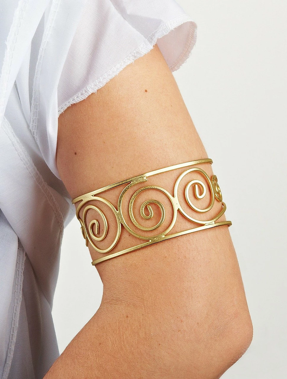 Rule in glamour with this Spartan Queen Arm Cuff, featuring an intricate pattern in gold.