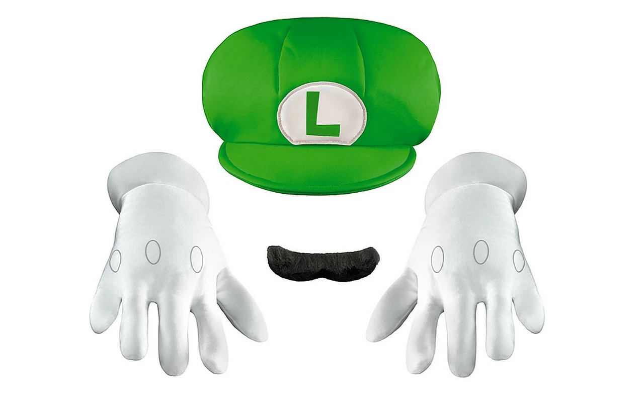 Be everyone’s favorite mustachioed sidekick with this Luigi Child Kit, featuring a hat, mustache, and gloves. Help Mario save the day, then eat a mushroom and grow!