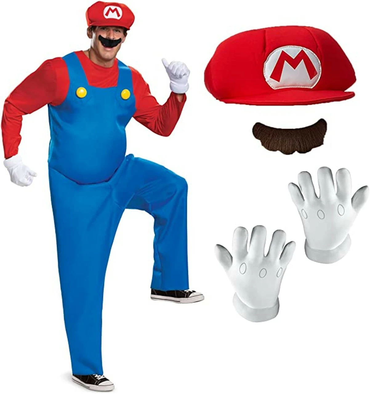 Run, jump and slide as you travel through the Mushroom Kingdom to rescue Princess Peach in this Mario Deluxe Adult Costume! This fun adult version Mario costume features the essential Mario style full bodysuit with a pair of white gloves and a sewn-in padded belly. It also includes a red hat with Mario’s initials on the center and a faux silly moustache that will get you completely in character. This Mario Deluxe Adult Costume will have you prepared for action-packed adventure this coming Halloween! So jump into character as Mario this year!