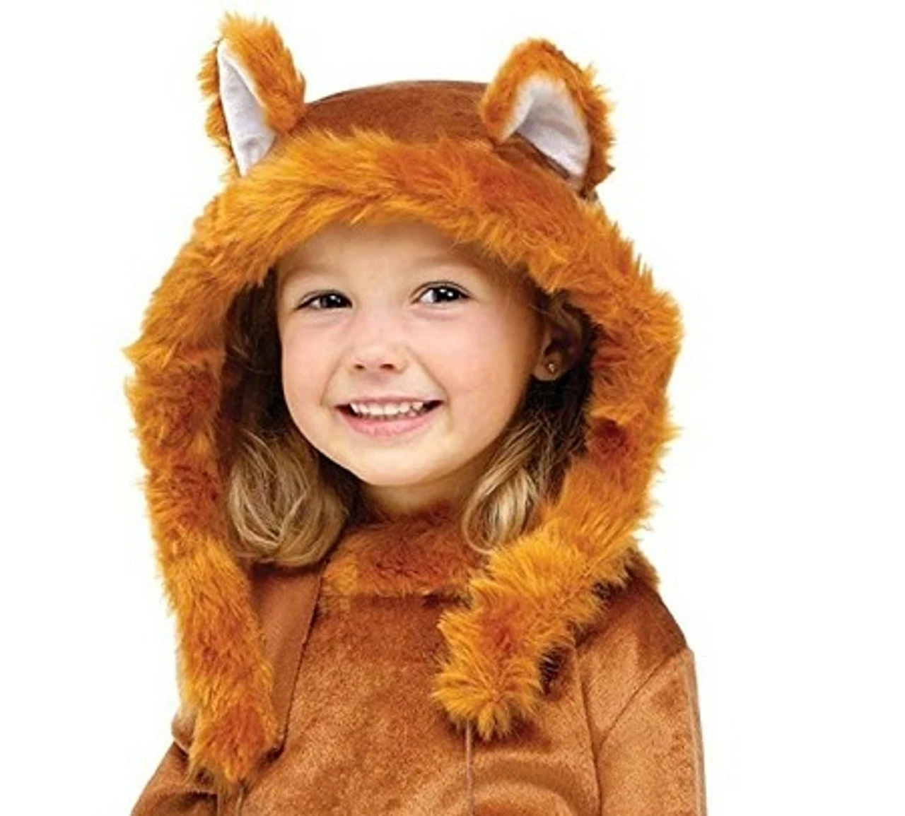 Your little one will be cute and stylish this Halloween in this Sweet Fox Toddler Girls Costume! It features a fox dress with a faux fur trim, a hood with little fox ears, a faux-fur fox tail and fluffy pom-poms dangling from the hood. It also comes with fuzzy faux-fur boot covers.