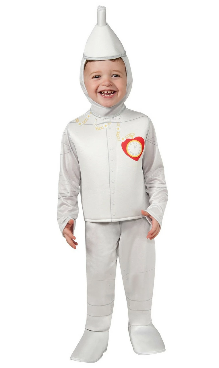 Become the popular and beloved Tin Man whose life ambition was to have a heart with the Wizard of Oz Tin Man Toddler Costume. The costume features a grey top with the red heart clock imprint and pants with the attached shoe covers. The cone heapiece completes this adorable costume.