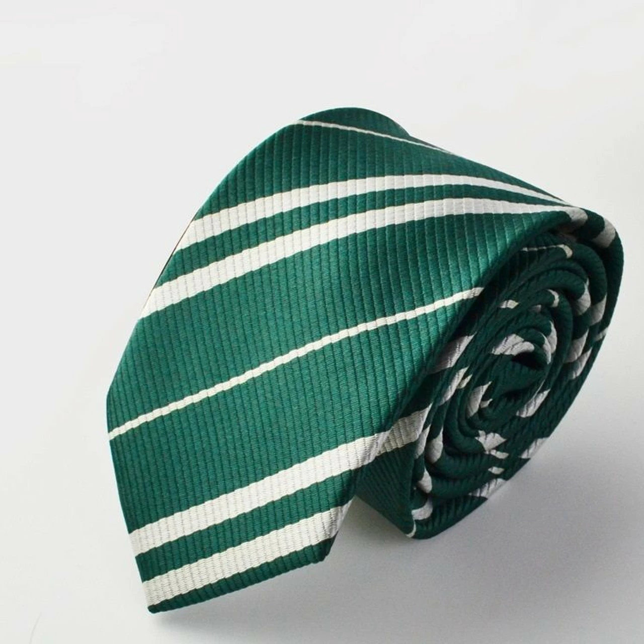 You won’t even need to go to Diagon Alley to get this Tie! Don’t let Professor Slughorn catch you without it—complete your Slytherin Uniform and step into the magical world of Harry Potter with this green tie featuring diagonal stripes.