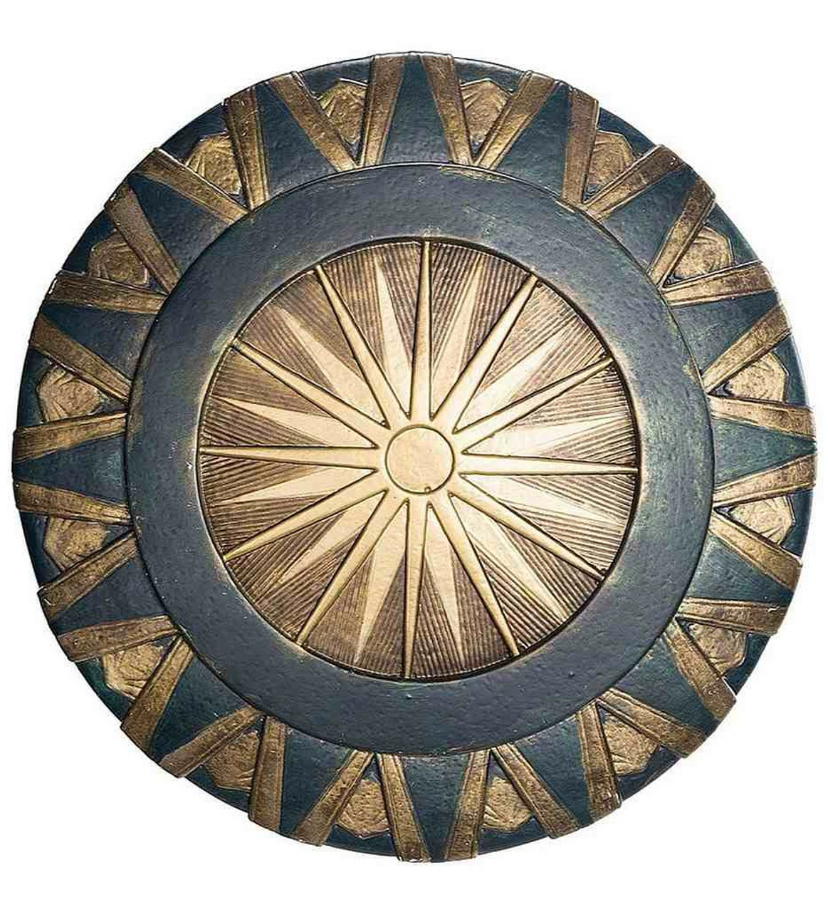 This officially licensed 12” shield from the Wonder Woman movie is a must for any Wonder Woman costume! The shield is beautifully detailed and identical to the one Wonder Woman uses in the mmovie, with a golden sun in the center and golden decorations all around.